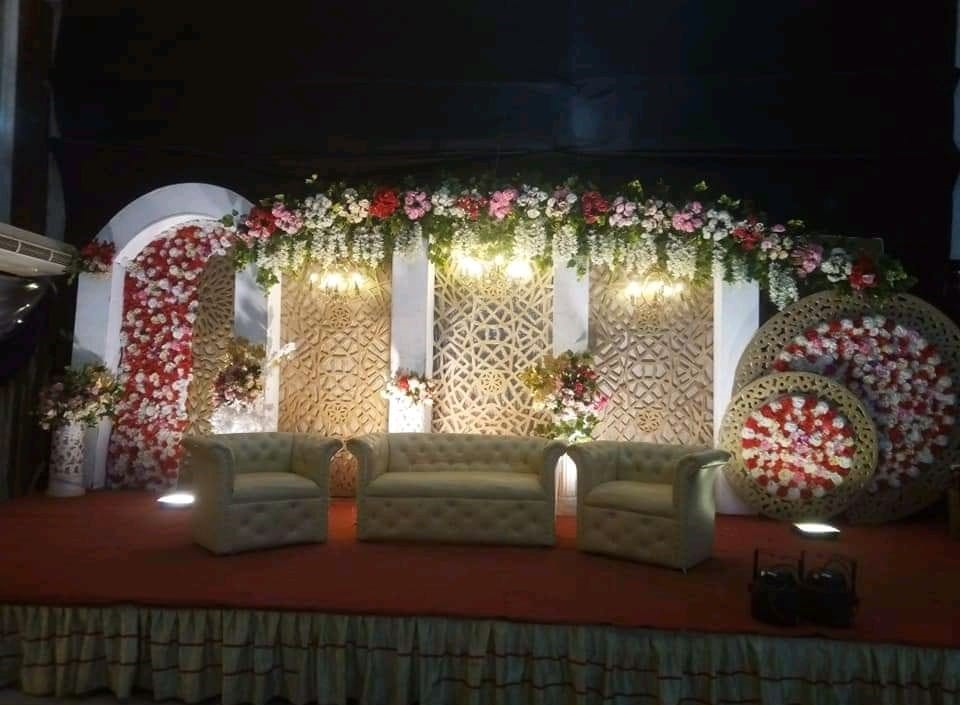 - Backdrop Support: Metal or wooden framing behind the panels and floral structures