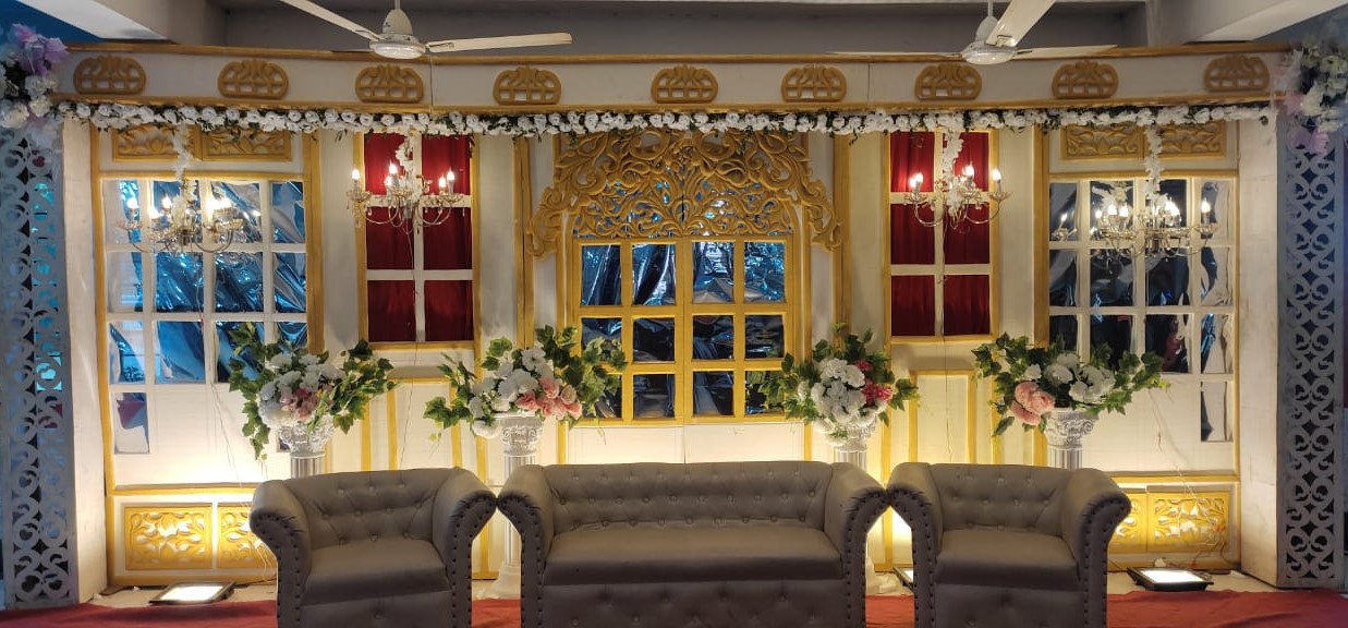 - Backdrop Support: Metal or wooden framing behind the panels and floral structures